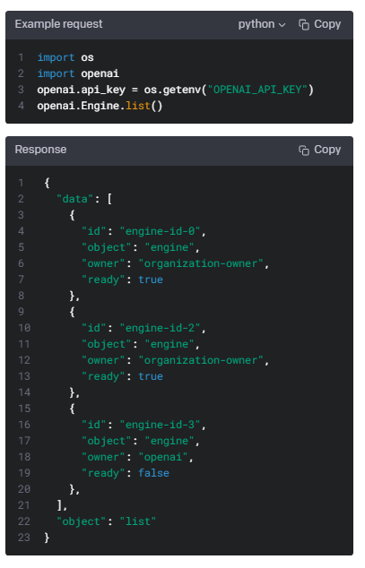 | Engines - openai.Engine.list(), (0) | 2023.01.17 |