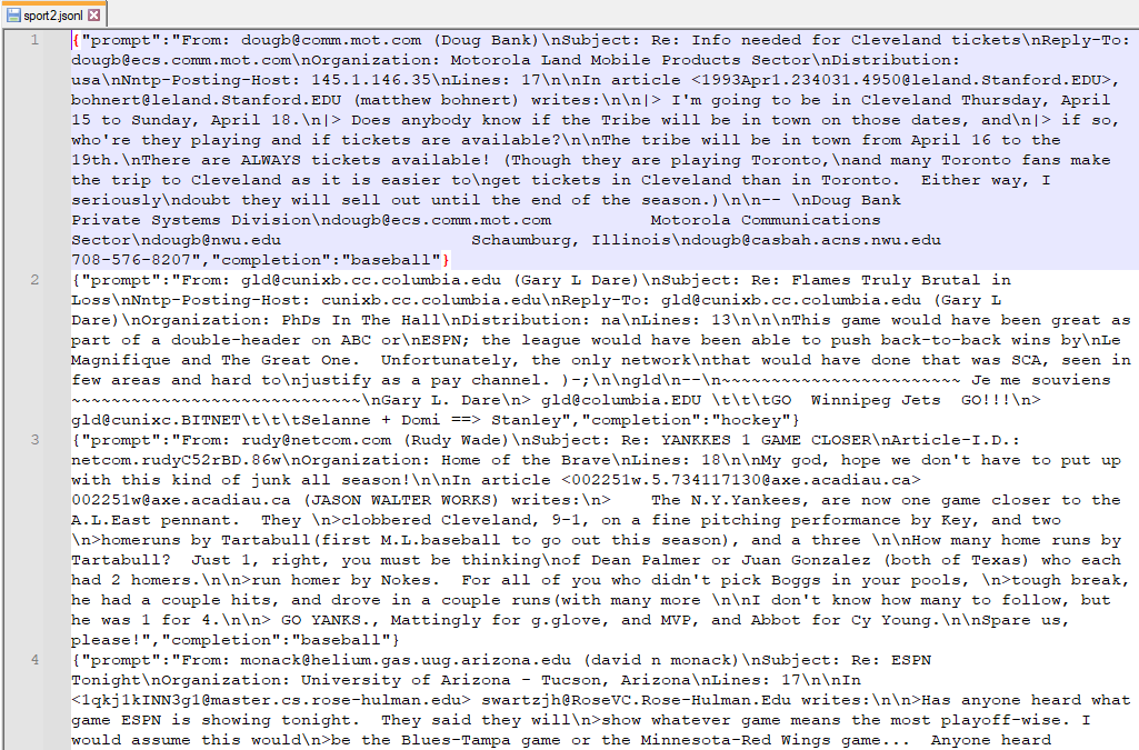 Now, let's import our two files ('training.jsonl' and 'validation.jsonl') and keep those IDs since we're going to use them later for finetuning.