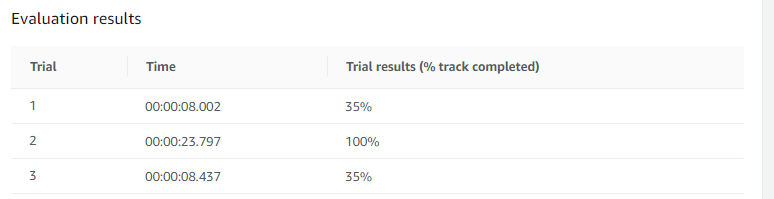 reward_function을 조금씩 고쳐가며 계속 훈련을 하고 싶지만.. 한번 그렇게 하는데 별도로 돈을 내야하기 때문에 맘 놓고 여러가지를 시도 하지 못하겠다.