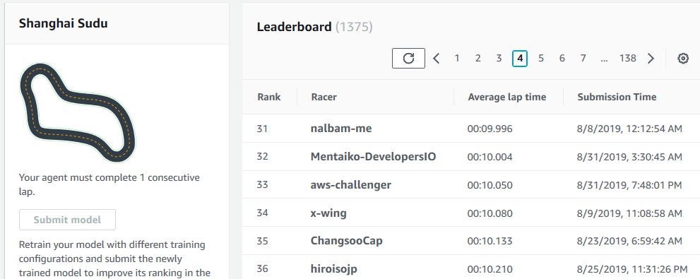 | AWS Deepracer 10월 Virtual Race 경기 평가 (0) | 2019.11.07 |
