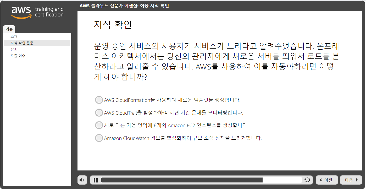 | AWS Cloud Practitioner Essentials (Digital) (Korean) - 01 (0) | 2019.12.29 |