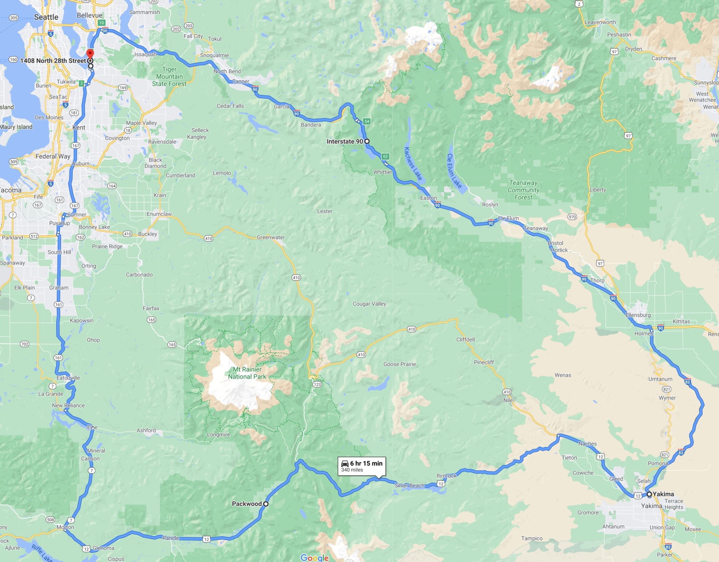 아마 레이니어 산이 있는 산맥이 막아서 비가 별로 오지 않아 사막지대가 된 것 같다.