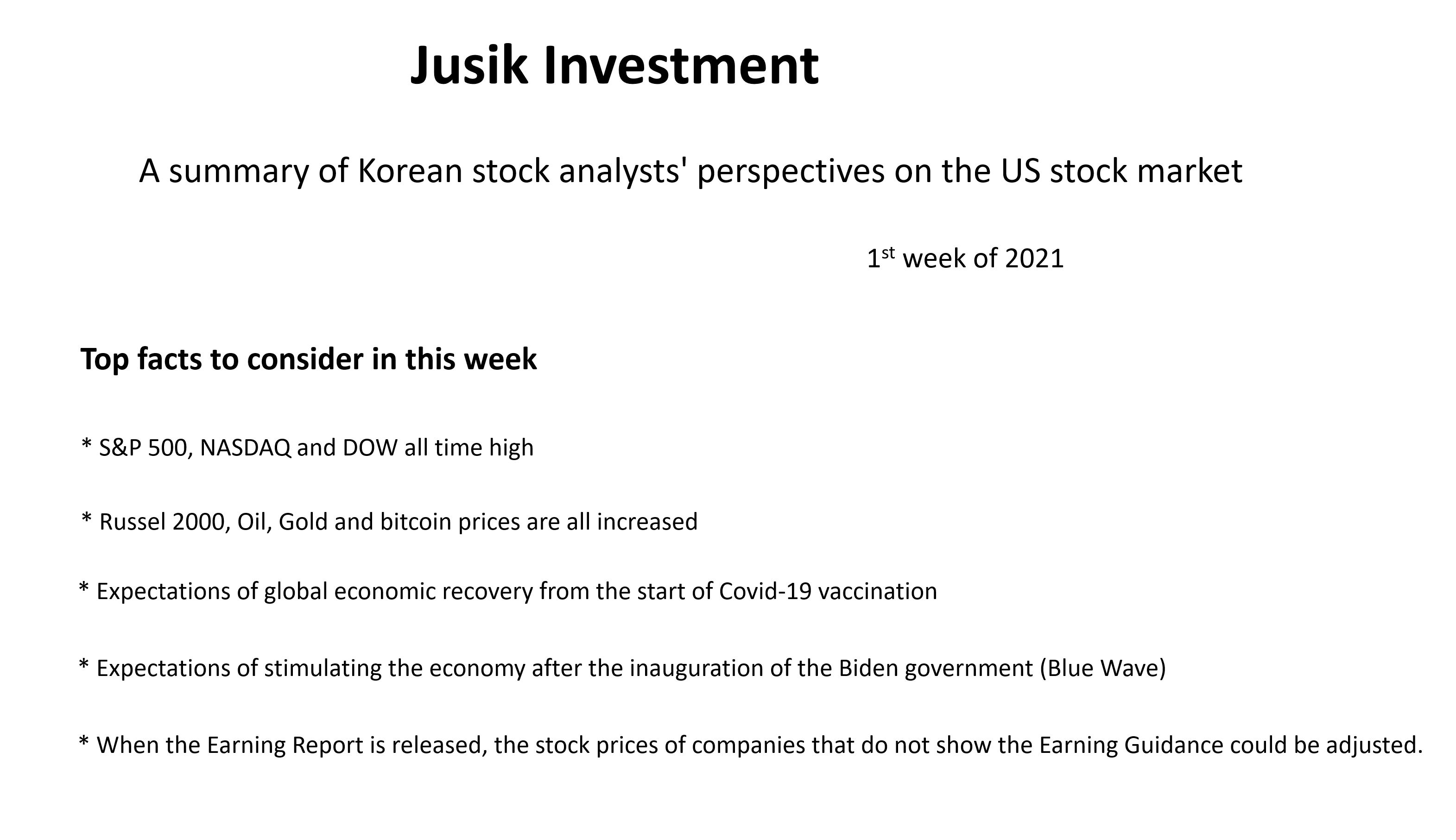 2021년 첫째주 미국 주식 분석 요약