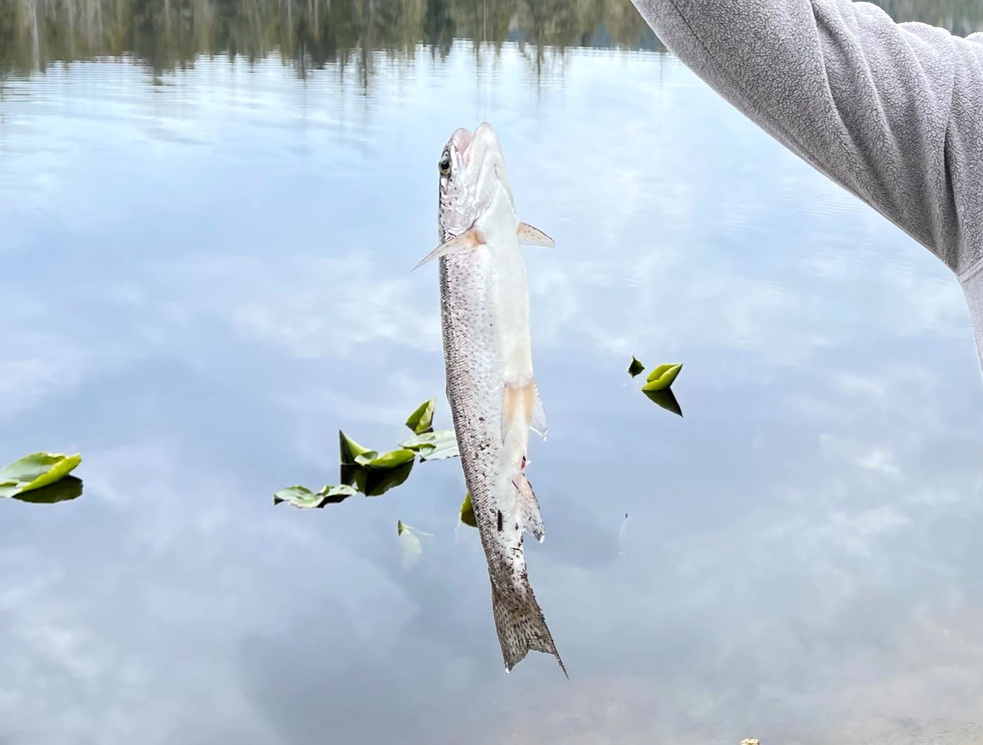 Fortunately, I caught a rainbow trout here and it was quite good size.