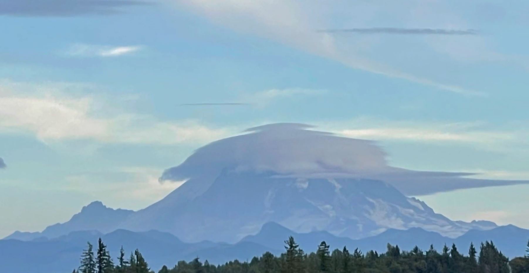 저 산을 비롯한 Cascade 산맥의 산들이 너무 높아서 비 구름들이 넘어가지 못하고 서쪽 시애틀에 비를 다 쏟아 놓는다.