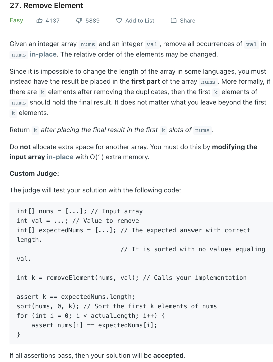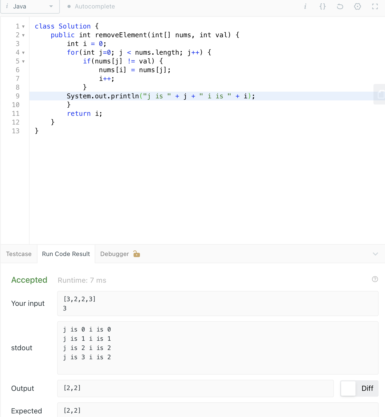 if(nums[i] == val) { // 해당 값이 Val 과 같으면