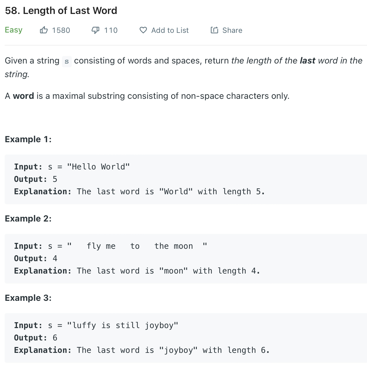 public int lengthOfLastWord(String s) {