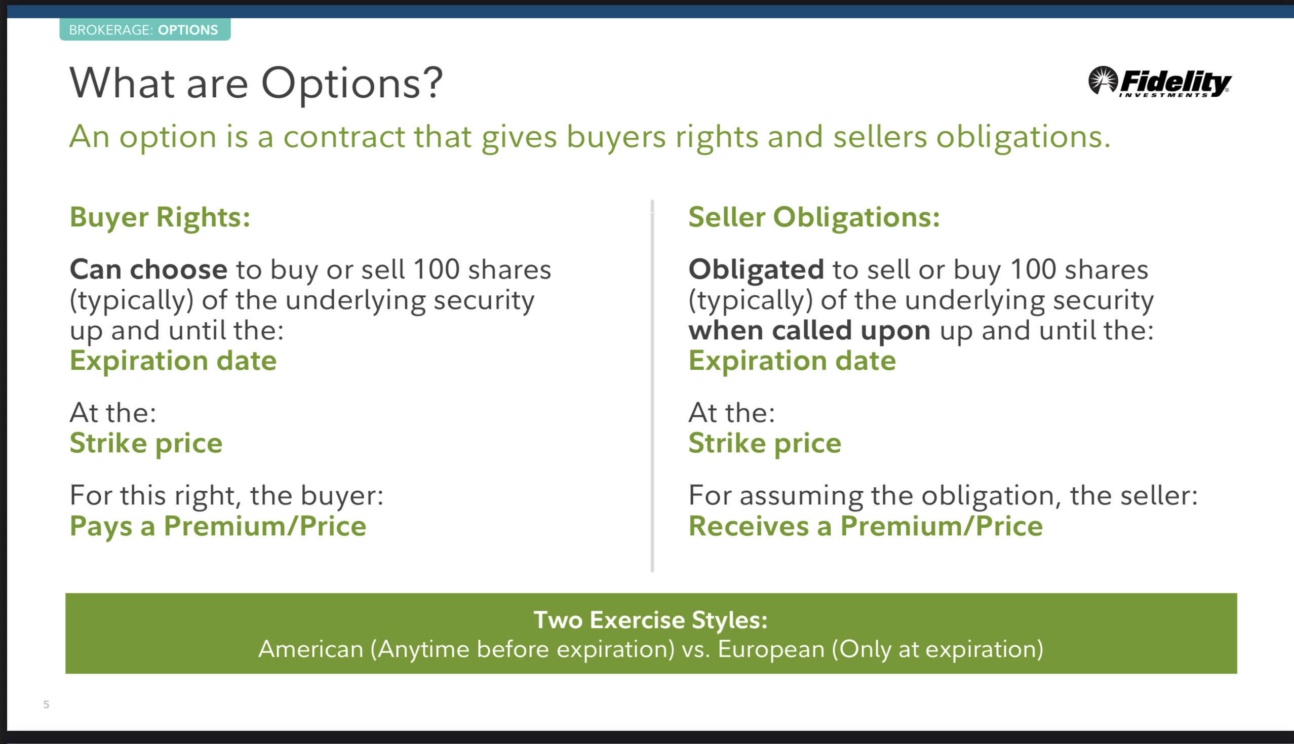 옵션 소지자 (매수자)가 정해진 만기일 이내에 정해진 가격으로 (통상적으로) 100주를 살 권리가 있다.