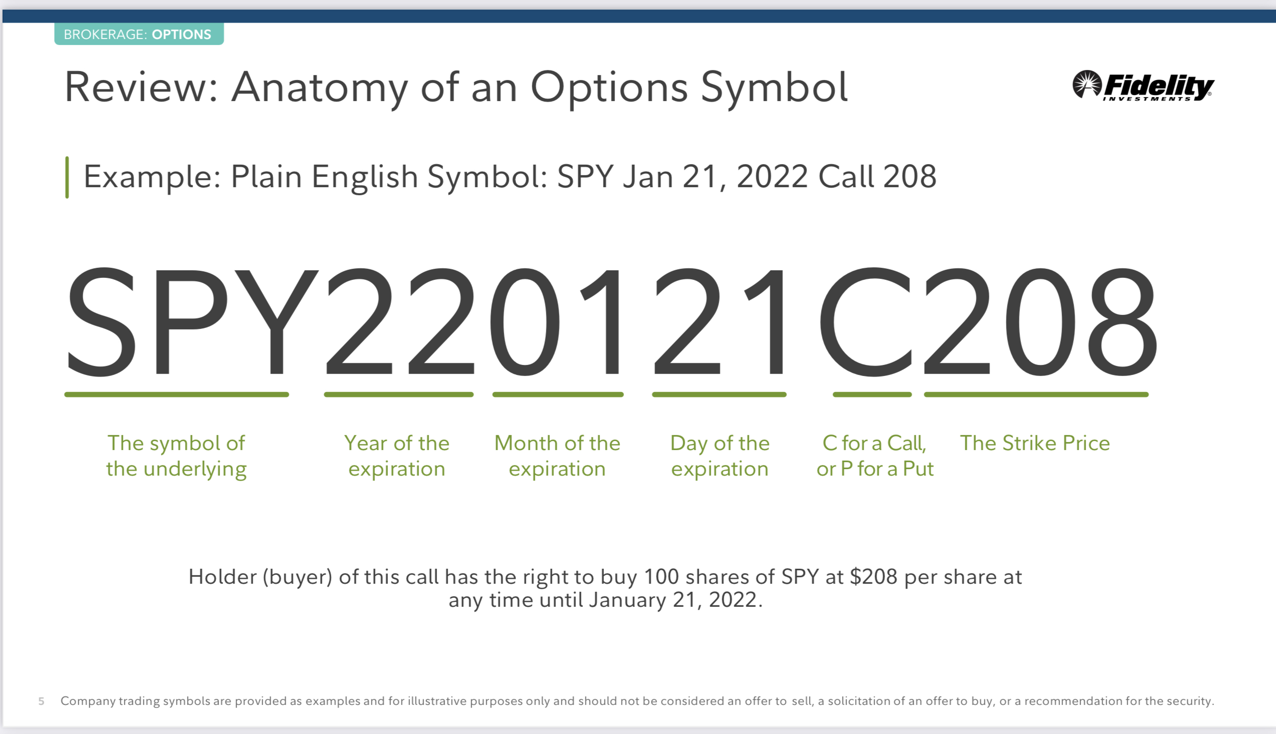 이 옵션 소유자 (buyer)는 SPY라는 주식을 주당 208달러에 매수 할 수 있는 권리를 가지고 있다. 이 권리는 2022년 1월 21일까지 유효하다.