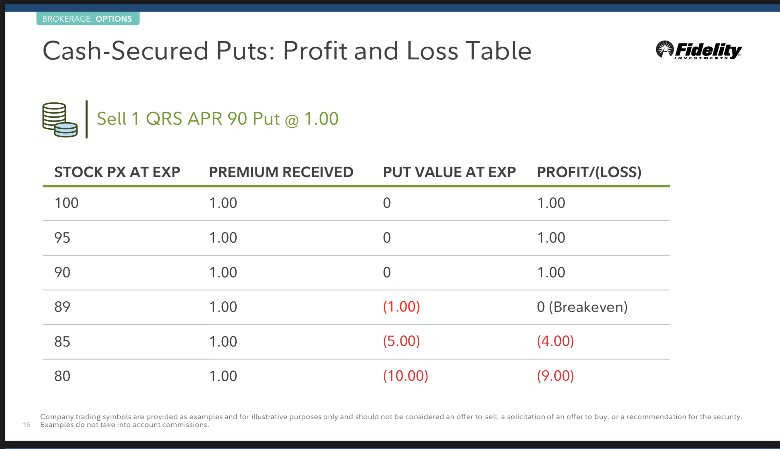 • 주가 리스크을 약간 줄입니다(수령한 프리미엄에서 수수료를 뺀 금액만큼).