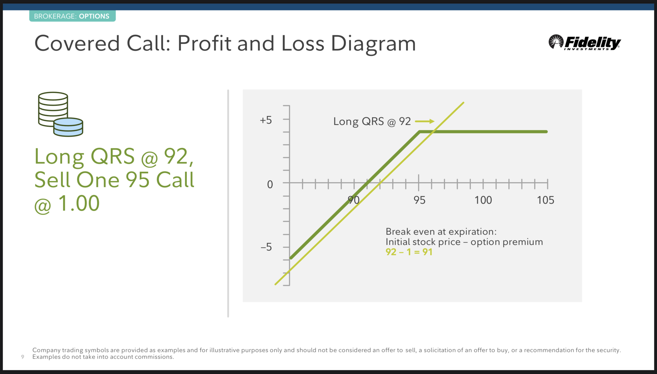 주식이 91불로 1불 떨어지면 해당 하락분인 1불과 프리미엄 1불 수익이 합해져서 손익 분기점이 된다.