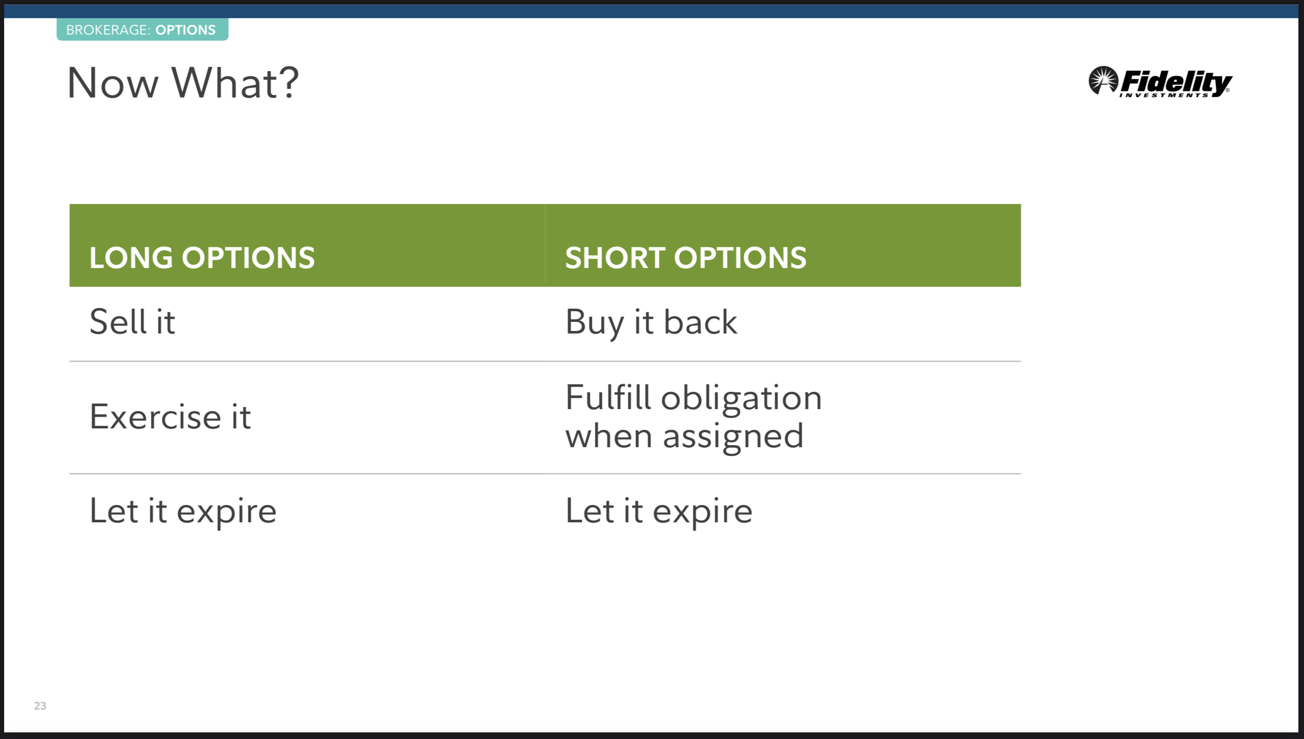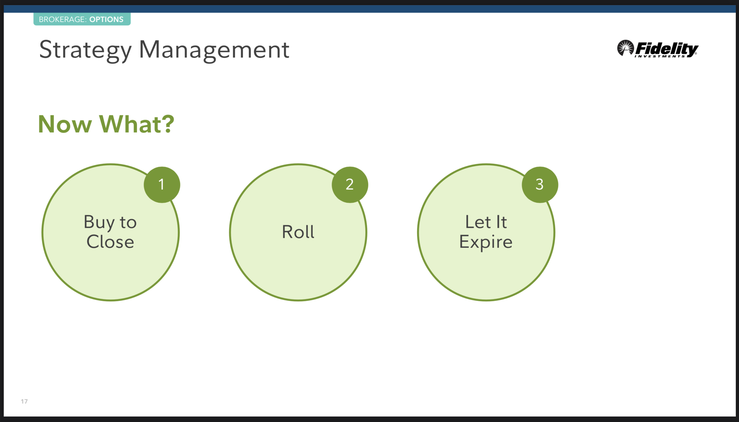 이제 거래를 마쳤다면 그 옵션이 만기 되기 전, 후 그리고 옵션 기간 동안 관리 하기 위한 전략들을 배우게 됩니다.