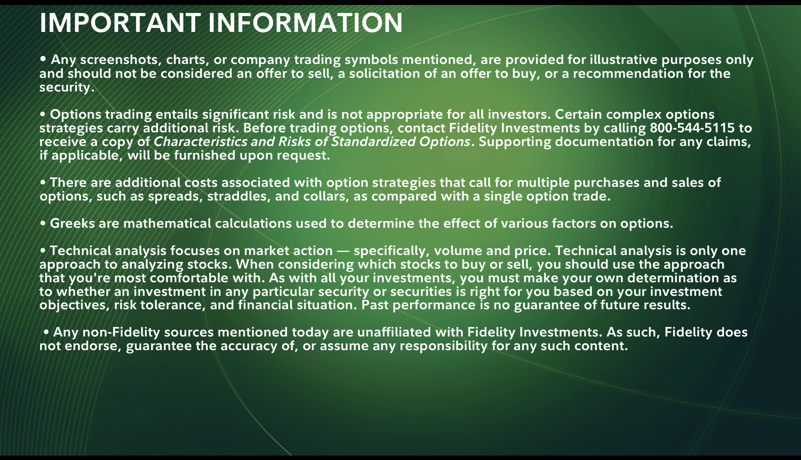 • 옵션 거래는 상당한 위험을 수반하며 모든 투자자에게 적합하지 않습니다. 특정 복합 옵션 전략은 추가적인 위험을 수반합니다. 옵션을 거래하기 전에 800-544-5115로 전화하여 Fidelity Investments에 연락하여 표준화된 옵션의 특성 및 위험 사본을 받으십시오. 모든 청구에 대한 증빙 문서는 해당되는 경우 요청 시 제공됩니다.