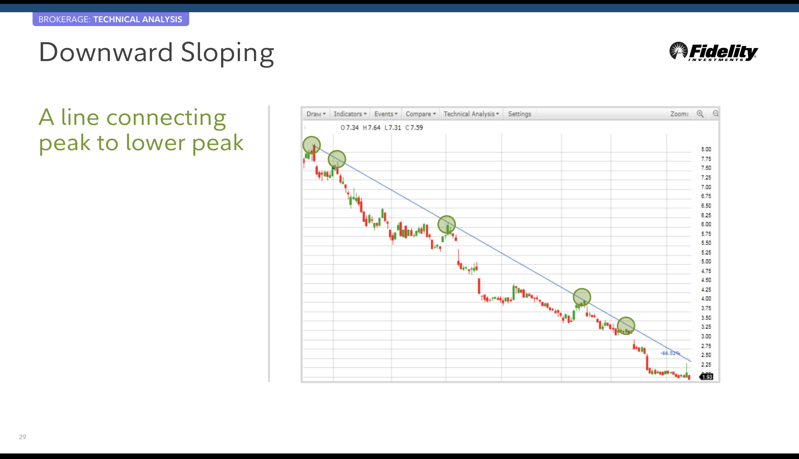 하향 추세는 고점과 저점이 계속적으로 낮아지는 것입니다.