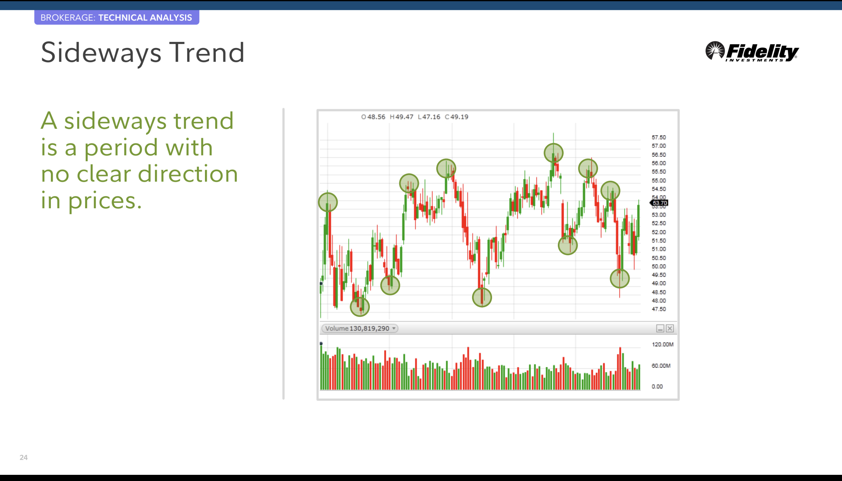 횡보 추세는 가격의 방향이 명확하지 않은 것입니다.