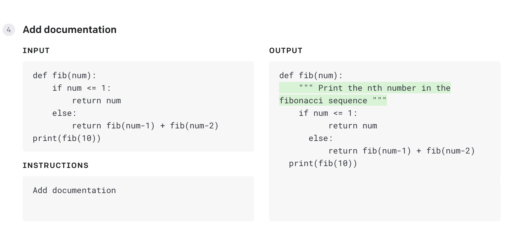 이 예에서 우리는 Codex에게 함수를 호출할 대상과 수행할 작업을 알려줍니다.