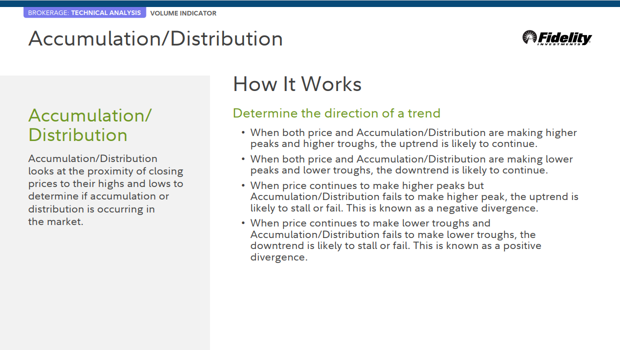 축적/분배는 종가가 최고점과 최저점에 얼마나 근접해 있는지를 살펴보고 시장에서 누적 또는 분배가 발생하는지 확인합니다.