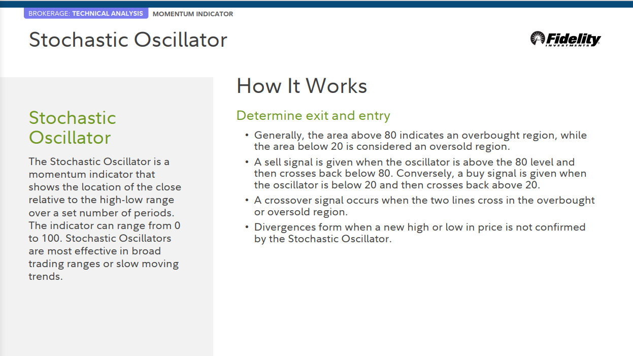 스토캐스틱 오실레이터는 일정 기간 동안 고저 범위에 상대적인 종가 위치를 보여주는 모멘텀 지표입니다.