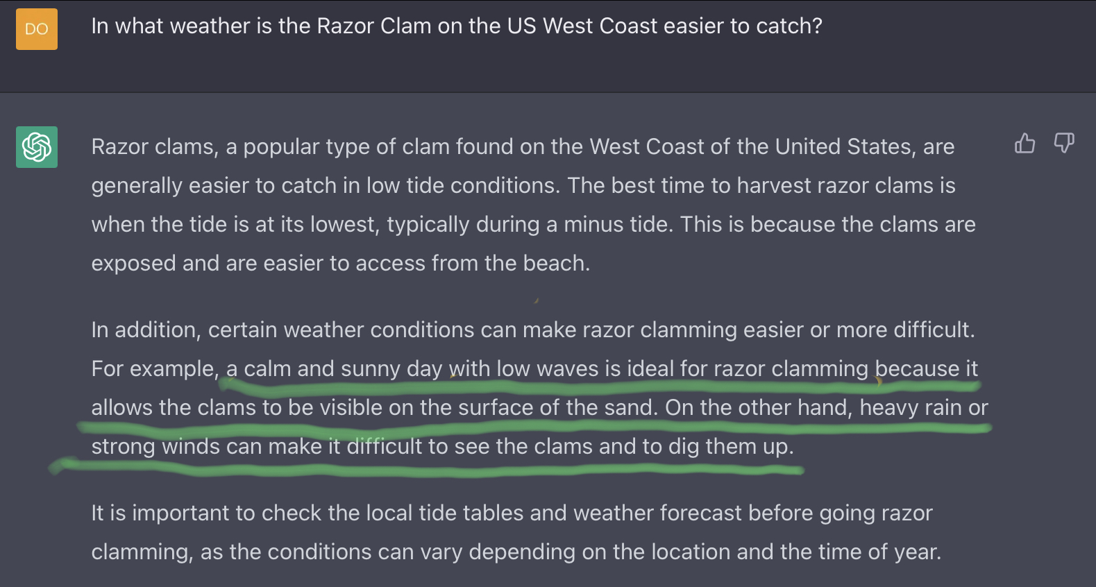 미국 서부의 Razor Clam 을 채취하는데 어떤 날씨가 좋냐고...