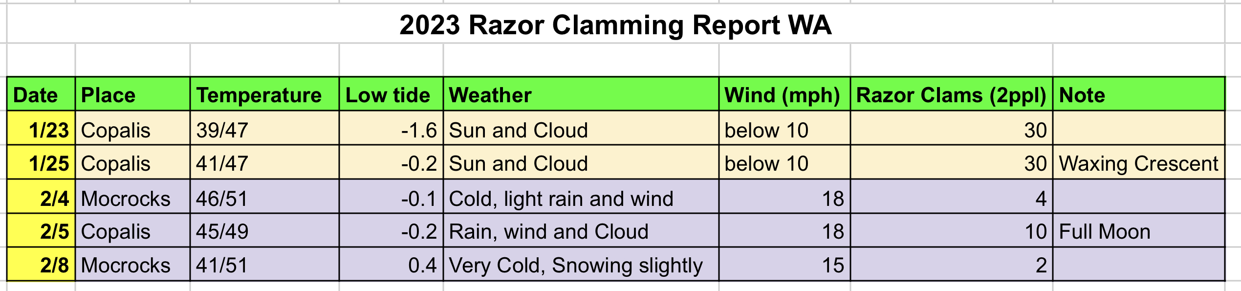 | -Seattle- Razor Clam을 잡기 좋은 날은 어떤 날일까? (0) | 2023.02.27 |