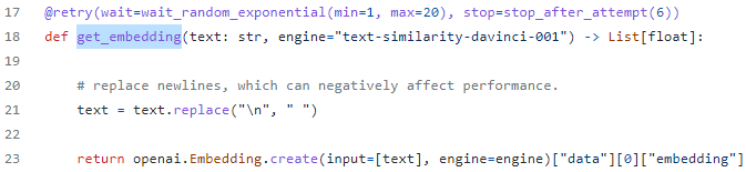 그리고 embeddings_utils에서 get_embedding 등 여러 api 함수들을 import 합니다.