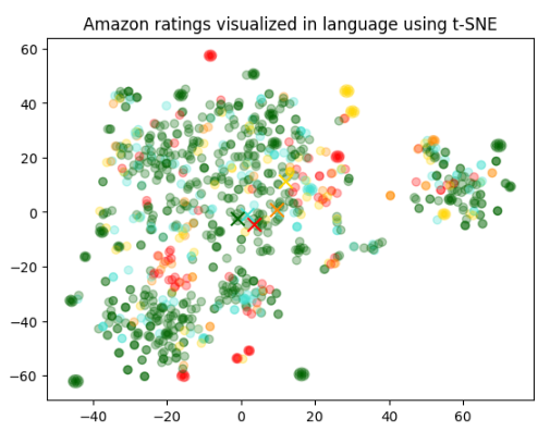 각 별점별 평균 위치와 각 데이터별 위치가 색깔별로 표시 돼 있습니다.