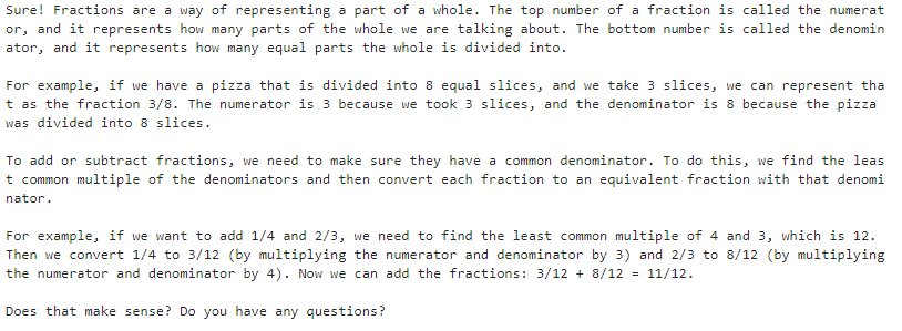 {"role": "user", "content": "Can you explain how fractions work?"},