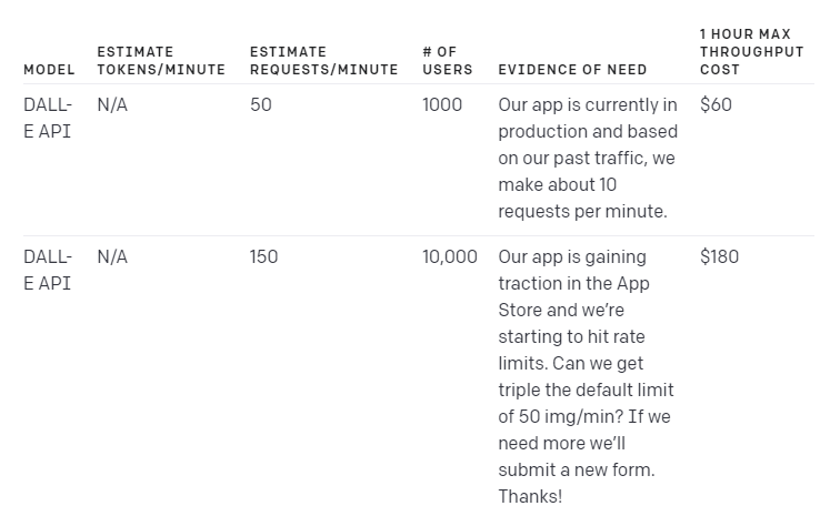 현재 edit endpoint 같은 free beta endpoints 에 대해서는 제한량 증가를 지원하지 않습니다. 또한 ChatGPT Rate Limit을 늘리지 않지만 ChatGPT Professional 액세스 대기자 명단에 가입할 수 있습니다.