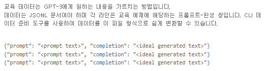 오늘 다룰 Fine-Tunning 예제에서는 이 두가지 정보만 있으면 GPT-3 AI 를 훈련 시킬 수 있습니다.