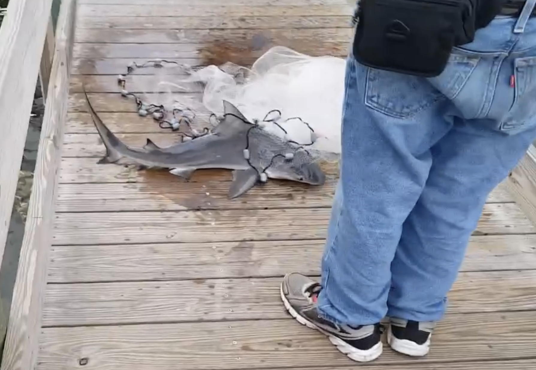 도서관 옆 fishing pier에서 상어가 잡히다니… 헐….