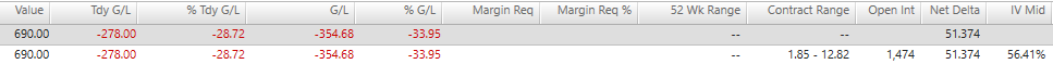이 옵션을 다시 팔면 -353.52 달러만 손해 본다는 얘기인것 같다.