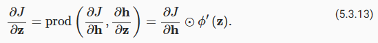 Since the activation function φ applies elementwise, calculating the gradient aJ/az∈Rℎ of the intermediate variable z requires that we use the elementwise multiplication operator, which we denote by ⊙: