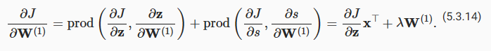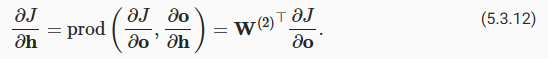 Finally, we can obtain the gradient aJ/aW(1)∈Rℎ×d of the model parameters closest to the input layer. According to the chain rule, we get