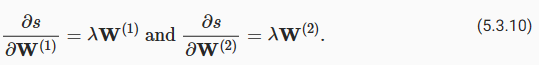 Next, we calculate the gradients of the regularization term with respect to both parameters: