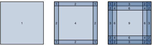 위에서 설명한 것처럼 컨볼루션 레이어를 적용할 때 까다로운 문제 중 하나는 이미지 주변에서 픽셀이 손실되는 경향이 있다는 것입니다. 컨벌루션 커널 크기와 이미지 내 위치의 함수로 픽셀 활용도를 나타내는 그림 7.3.1을 고려하십시오. 모서리의 픽셀은 거의 사용되지 않습니다.