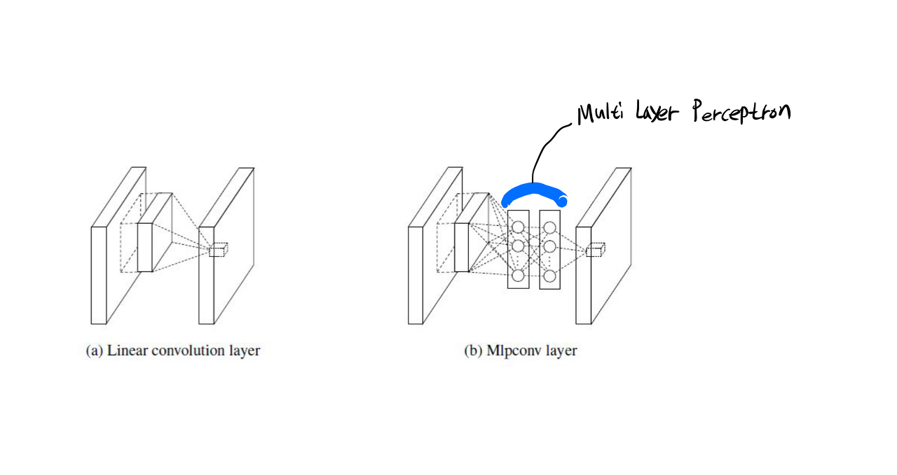Micro Neural Network : 전통적 convolution 모델은 비선형 활성화 함수 + 선형 필터. but NiN은 수용 영역 안에서 데이터를 더 복잡하게 추상화 할 수 있는 micro neural network를 사용