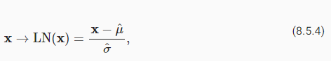 이전과 마찬가지로 작은 오프셋 ε>0을 추가하여 0으로 나누는 것을 방지합니다. 계층 정규화 사용의 주요 이점 중 하나는 발산을 방지한다는 것입니다. 결국, ε을 무시하면 레이어 정규화의 출력은 스케일에 독립적입니다. 즉, α≠0을 선택하는 경우 LN(x)≈LN(αx)가 있습니다. 이는 |α|→∞에 대한 등식이 됩니다(대략적인 등식은 분산에 대한 오프셋 ε 때문입니다).
