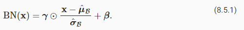 미니배치를 B로 표시하고 x∈B를 배치 정규화(BN)에 대한 입력으로 둡니다. 이 경우 배치 정규화는 다음과 같이 정의됩니다.