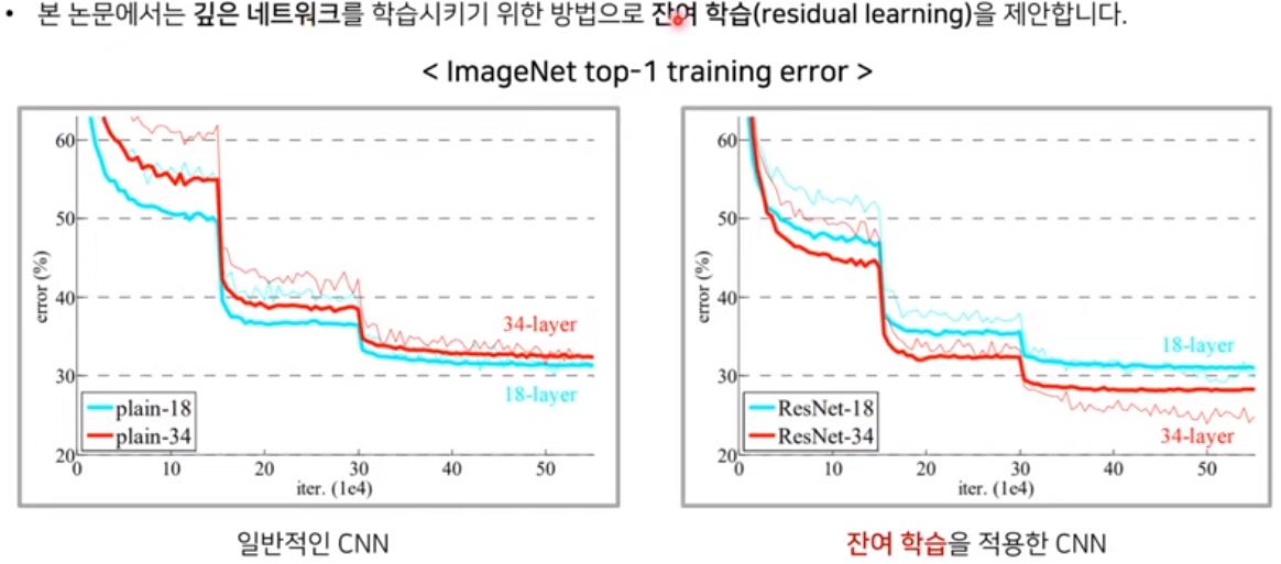 Residual learning framework : input 값을 output 값에 더애서 다음 layer의 input 값으로 넣어 줌