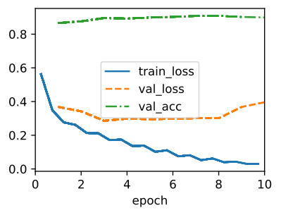 - model.apply_init([next(iter(data.get_dataloader(True)))[0]], d2l.init_cnn): 모델의 가중치를 초기화합니다. 이를 위해 FashionMNIST 데이터셋의 첫 번째 배치를 가져와서 모델에 적용하여 가중치를 초기화합니다. 초기화 방법으로는 d2l.init_cnn 함수를 사용합니다.