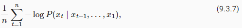 where P is given by a language model and xt is the actual token observed at time step t from the sequence. This makes the performance on documents of different lengths comparable. For historical reasons, scientists in natural language processing prefer to use a quantity called perplexity. In a nutshell, it is the exponential of (9.3.7):