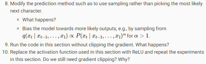 - Adjust the hyperparameters (e.g., number of epochs, number of hidden units, number of time steps in a minibatch, and learning rate) to improve the perplexity. How low can you go while sticking with this simple architecture?