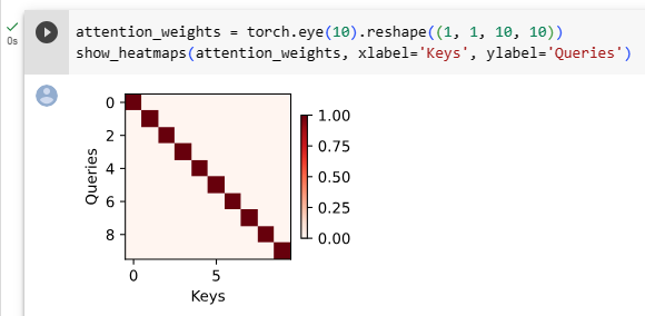 One of the benefits of the attention mechanism is that it can be quite intuitive, particularly when the weights are nonnegative and sum to 1. In this case we might interpret large weights as a way for the model to select components of relevance. While this is a good intuition, it is important to remember that it is just that, an intuition. Regardless, we may want to visualize its effect on the given set of keys, when applying a variety of different queries. This function will come in handy later.