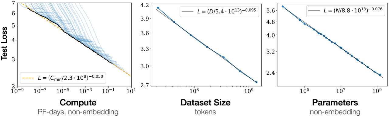 The empirical scaling behaviors in Kaplan et al. (2020) have been tested in subsequent large Transformer models. For example, GPT-3 supported this hypothesis with two more orders of magnitude in Fig. 11.9.11.