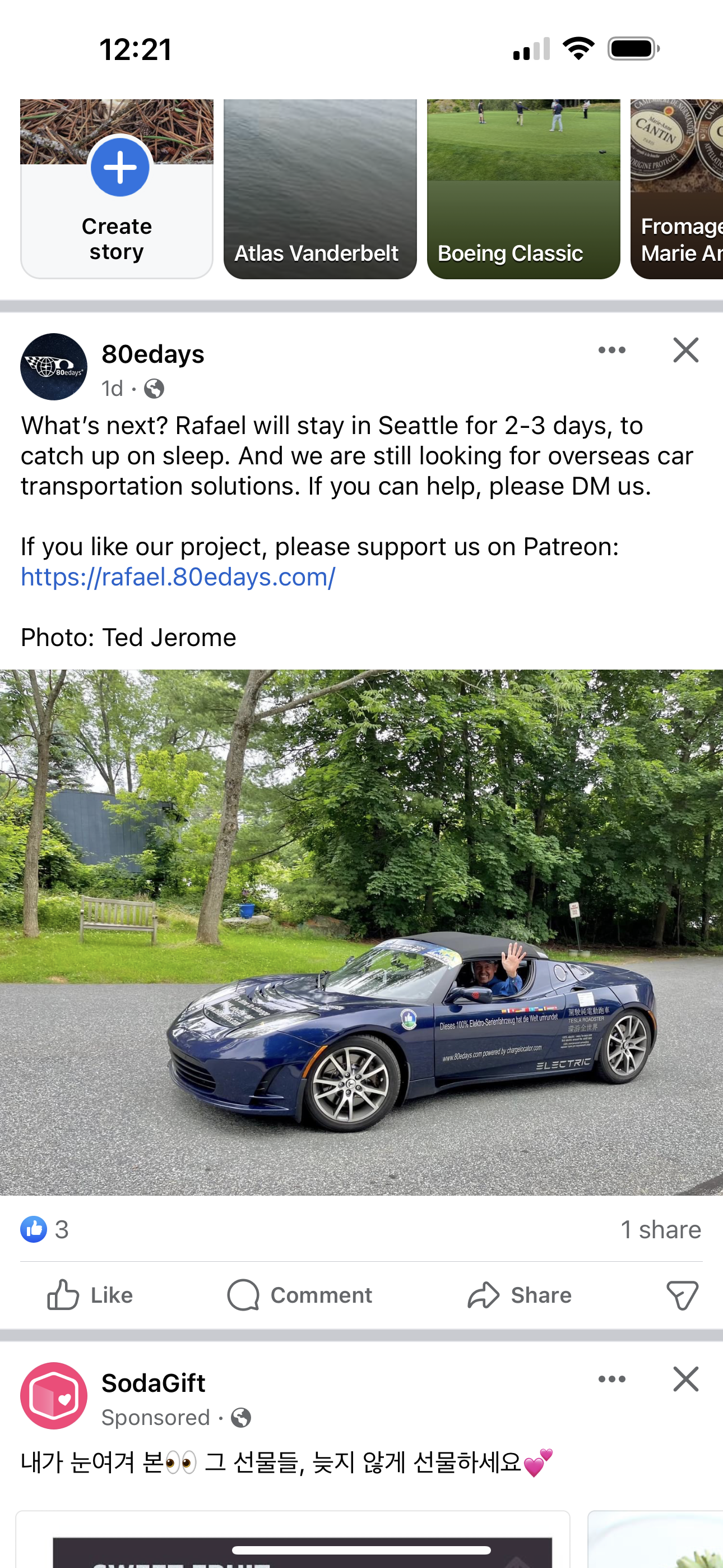 그는 자신의 차 테슬라 로드스터로 2012년 127일간의 세계 일주를 성공적으로 완료 했었다.