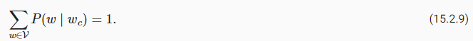 Recall our discussions in Section 15.1. The main idea of the skip-gram model is using softmax operations to calculate the conditional probability of generating a context word wo based on the given center word wc in (15.1.4), whose corresponding logarithmic loss is given by the opposite of (15.1.7).