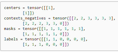 - names = ['centers', 'contexts_negatives', 'masks', 'labels']: