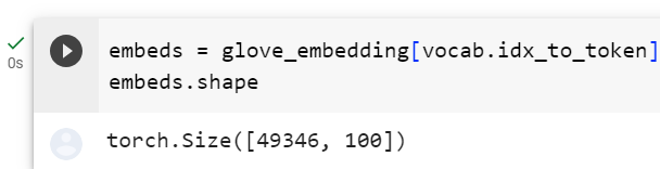 즉, 이 코드는 뉴럴 네트워크 모델의 임베딩 층에 미리 훈련된 임베딩 값을 복사하고, 해당 가중치의 역전파를 막아 가중치가 고정되도록 설정하는 작업을 수행합니다. 이는 사전 훈련된 임베딩을 사용하여 모델을 초기화하고, 이후 임베딩 가중치를 업데이트하지 않는 용도로 사용될 수 있습니다.