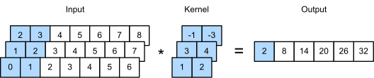 Before introducing the model, let’s see how a one-dimensional convolution works. Bear in mind that it is just a special case of a two-dimensional convolution based on the cross-correlation operation.