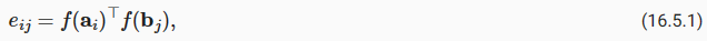 (16.5.1)에서 f는 ai와 bj를 입력으로 함께 사용하는 대신 입력 ai와 bj를 별도로 사용한다는 점을 강조해야 합니다. 이 분해 트릭은 mn 적용(2차 복잡도)이 아닌 f의 m+n 적용(선형 복잡도)만을 초래합니다.